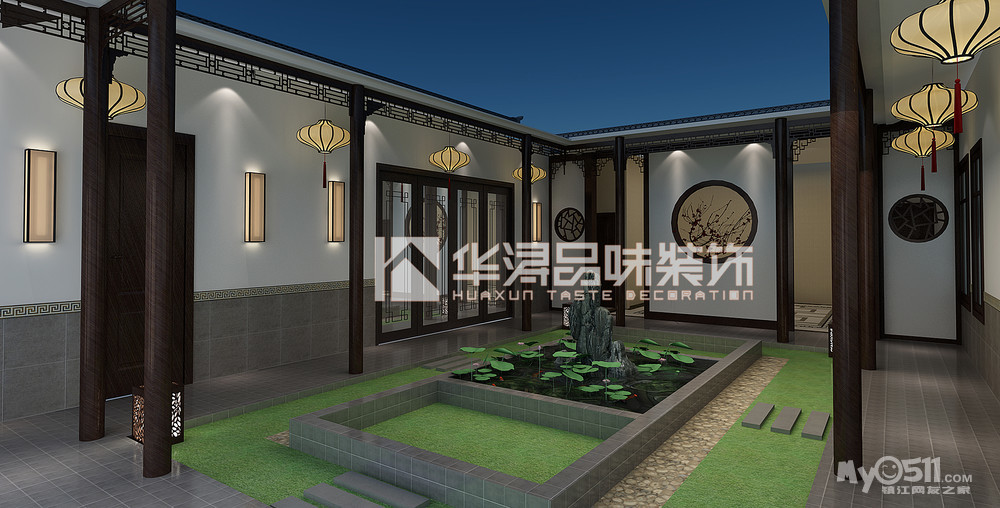 华浔品味装饰  >  [作品欣赏] 自建房四合院(390平)——新中式——《华浔品味装饰主任设计师:王丹》