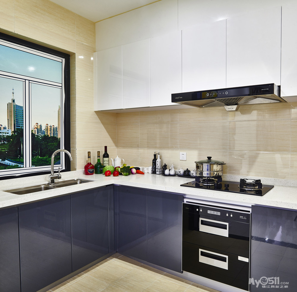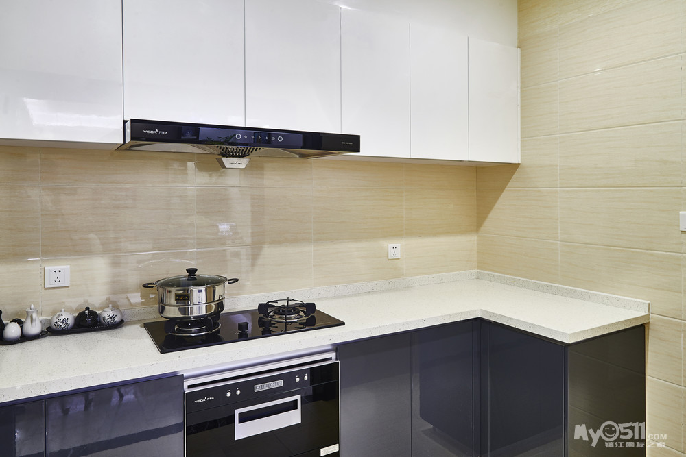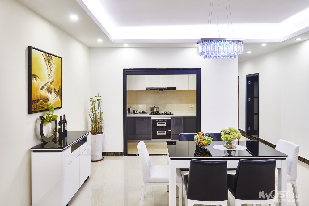 厨房:黑白明朗的对比,衬映出干净明亮的厨房,在这里,把自己的爱放进锅里,生活的五味加进去......烹饪出可口佳肴给爱人和孩子,是不是很享受?