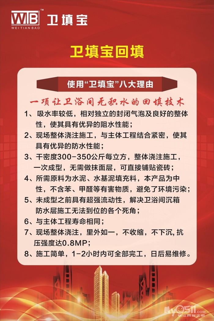 今天,东莞市西牛新材料科技有限公司又将眼光投视到卫浴间传统回填项目上来,经过近几年的努力,终于研发出一款提升卫浴间回填工艺革命性的材料,彻底解决卫生间渗水、异味等现象,同时也为装饰行业提供了施工便捷、安全环保、性价比高的卫浴间回填方案。