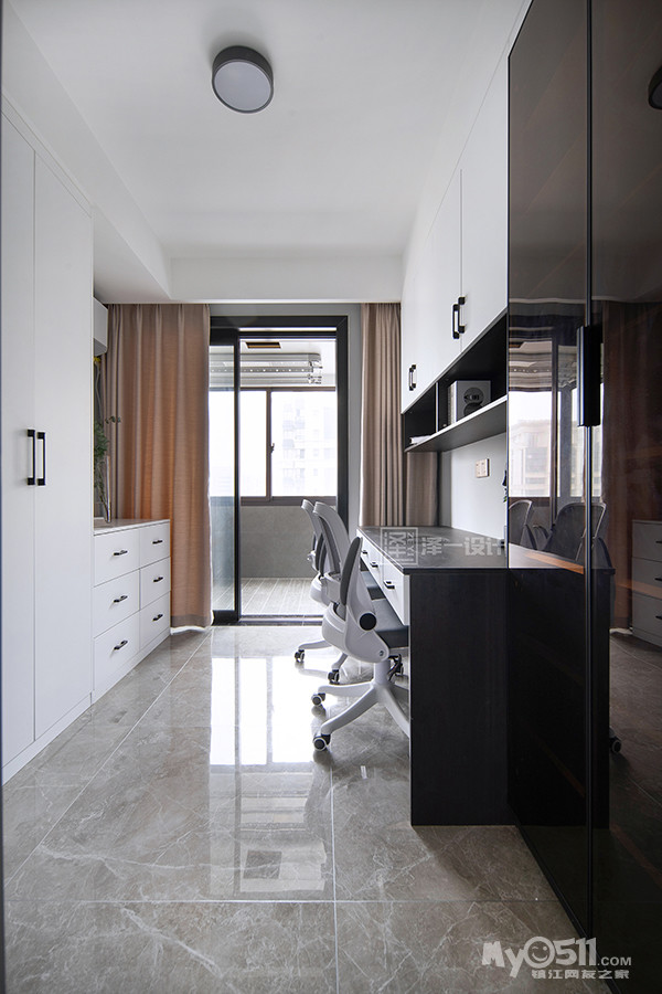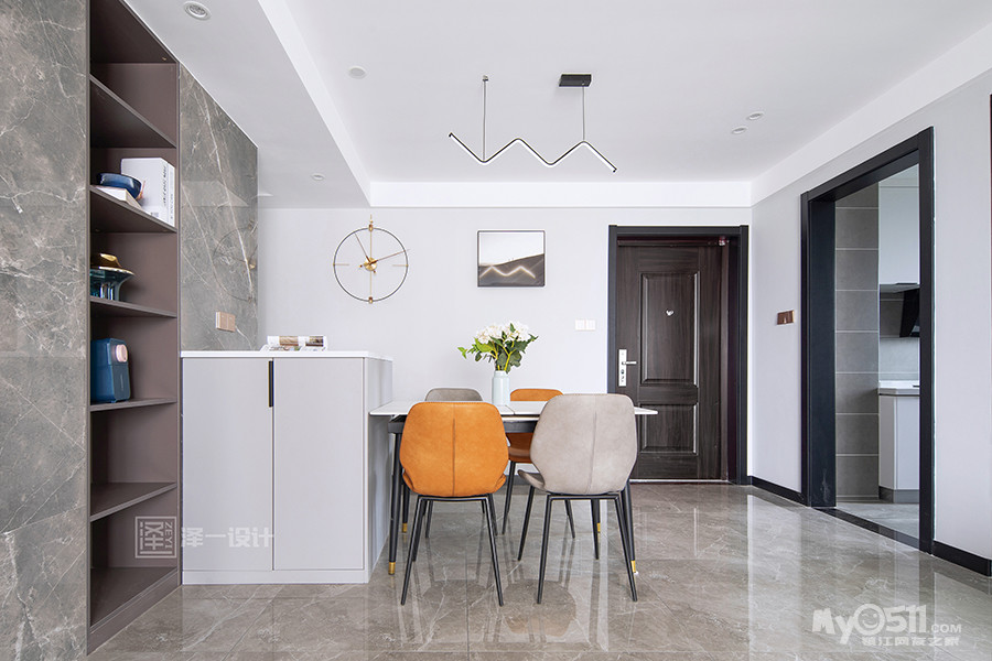 本案是一对年轻夫妻准备的婚房,90㎡三居室,为了方便居住者的生活起居,将原先带阳台的一间小卧室改造成多功能室,提供工作学习的空间,同时保留了存衣储物的功能。居住者注重质感,整体以“黑白灰”为基调,部分家具色彩将整个空间柔化,提升了温馨感。冷暖两色恰到好处,营造温馨与理性的氛围,让空间既给人理性冷静的思考,又流露出人文主义关怀。
