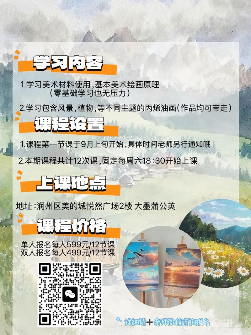 镇江润州区零基础 成人油画班开课啦~ 一起来画画吧 [广告推广]