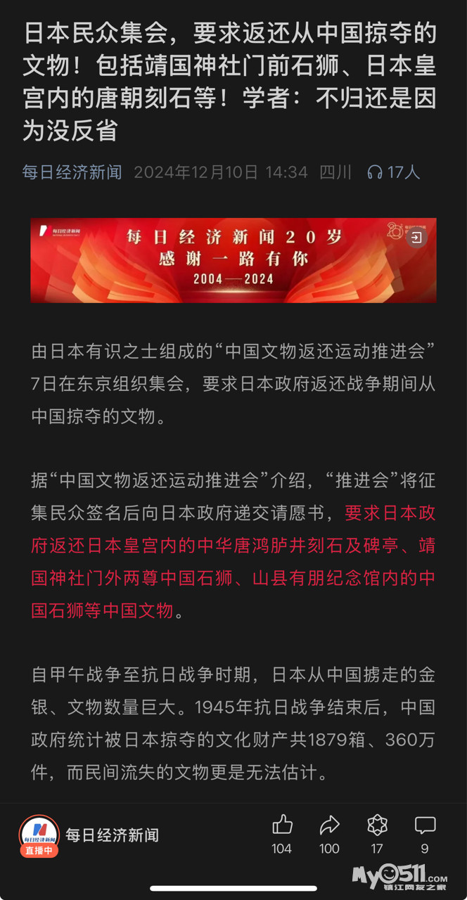» 日本民众集会,要求返还从中国掠夺的文物!