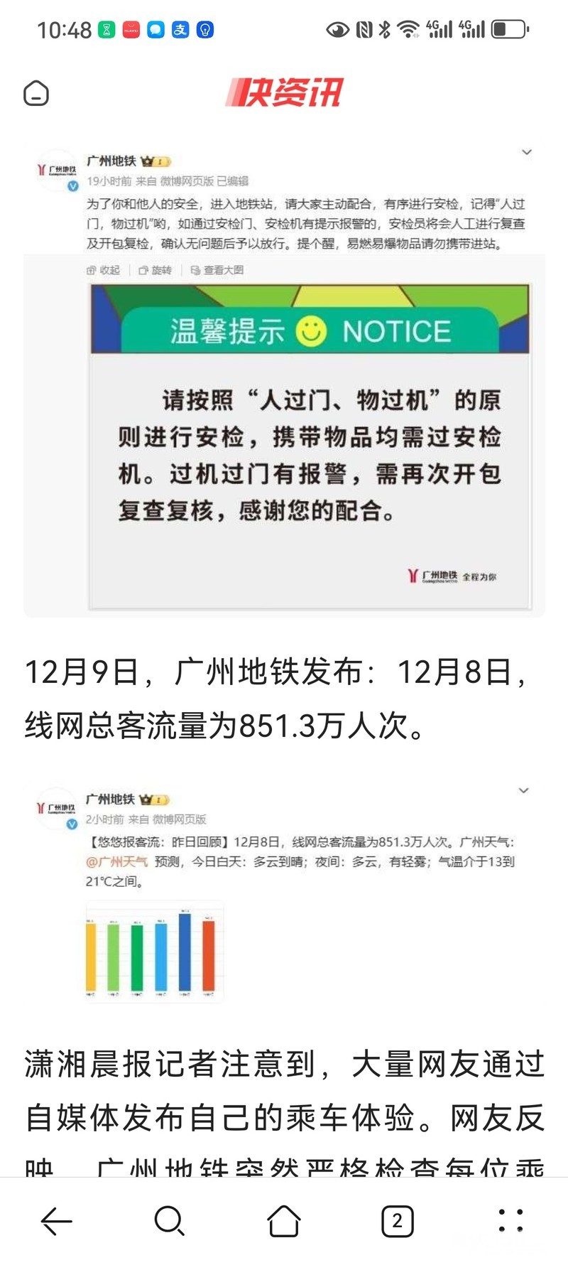 » 广州地铁进站时间增加,网友称上班迟到,官方微博连发多条安检信息,人工热线被打爆!