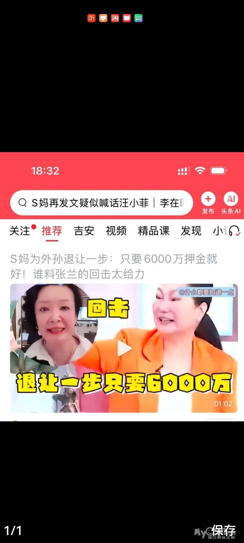 据说是为了跟汪小菲要6000万照看小孩押金,汪小菲没肯