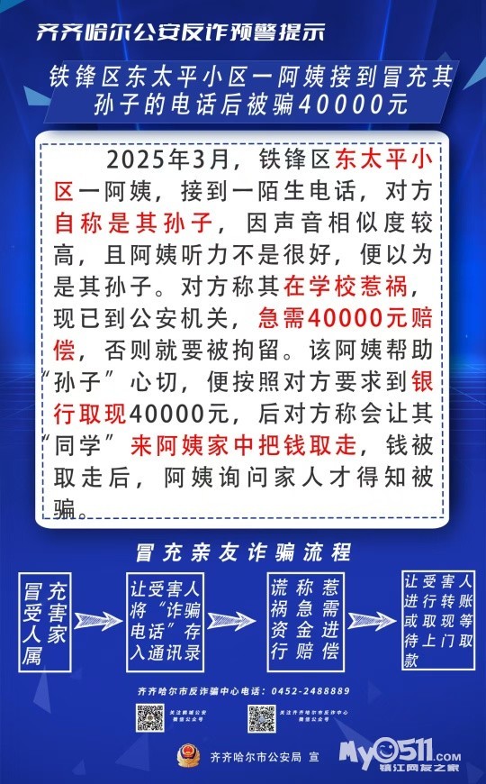 接到“孙子”电话称惹祸、出事,需要用钱,千万不要慌张!这不一定就是您的真孙子!凡是接到自称“孙子”电话急需用钱的,一定要和本人及家人核实,不要急忙转账、送钱!