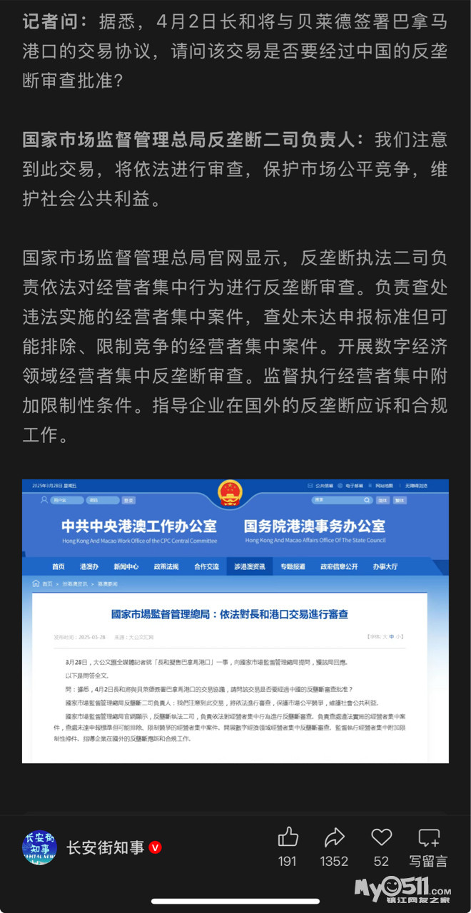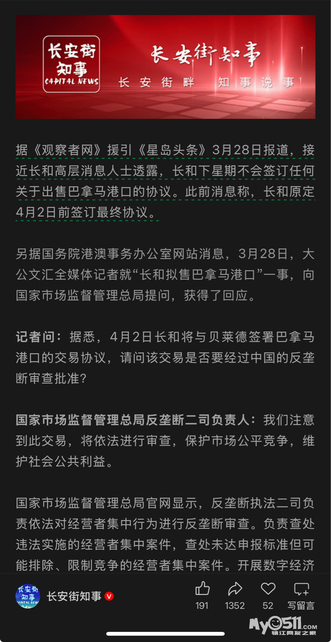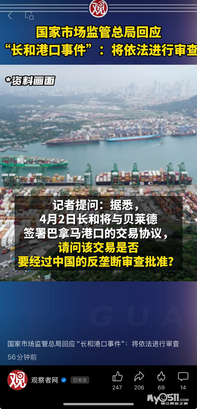 哦?昨天还是前天彭博社的消息称长和准备继续出售巴拿马运河港口运营权的运作