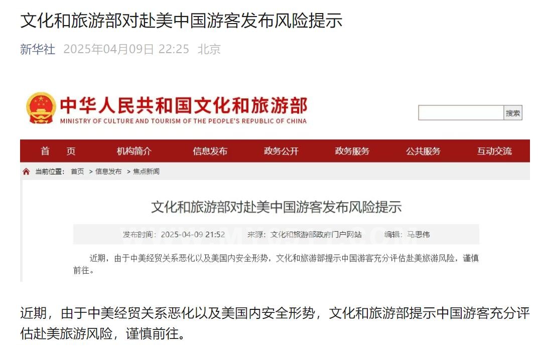 » 文化和旅游部对赴美中国游客发布风险提示