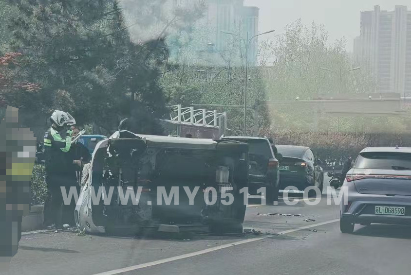 昨天纬五路这边,小车侧翻了……