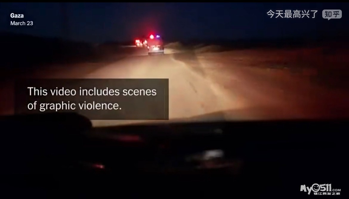 据纽约时报报道:一段在3月底于加沙一处乱葬岗中与14名援助人员的遗体一同被发现的手机里找到的视频显示,他们乘坐的救护车和消防车在被以色列部队密集枪火击中时,车辆标识清晰且紧急信号灯处于开启状态。