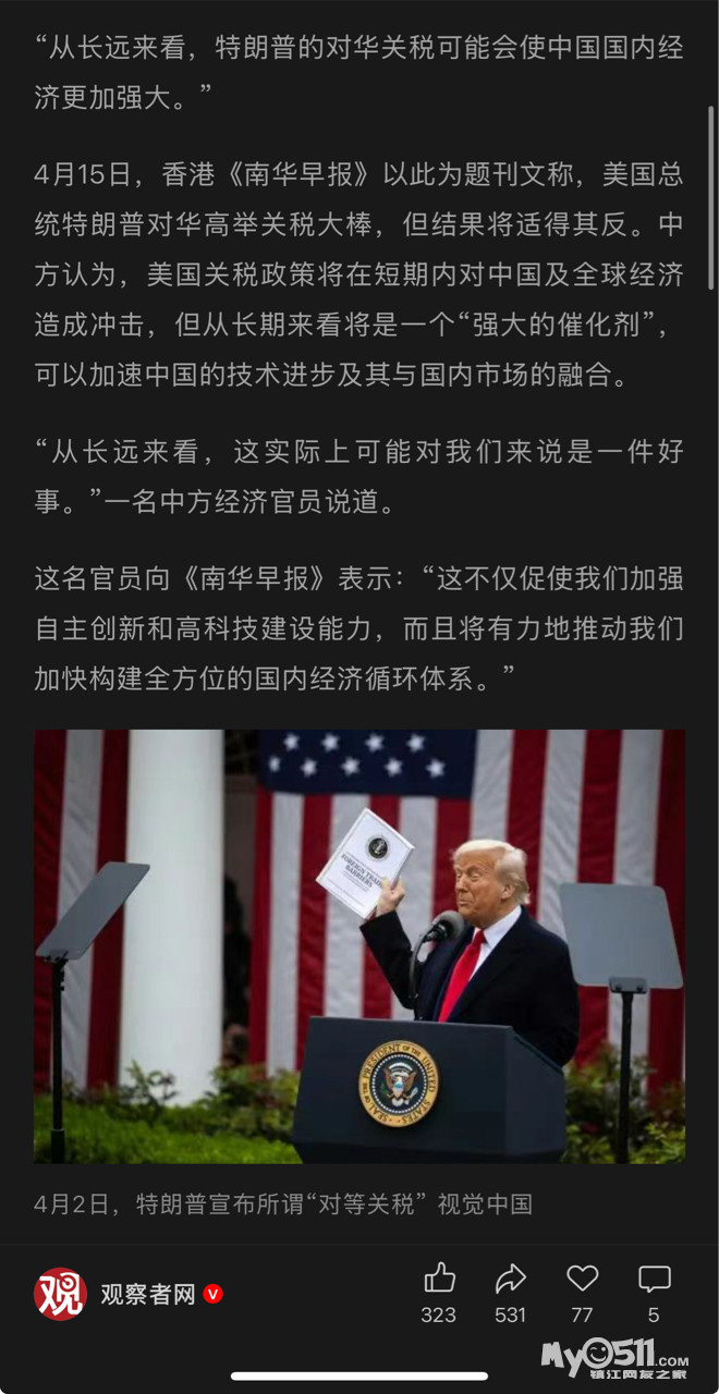 » "长期来看,特朗普关税或将增强中国国内经济"