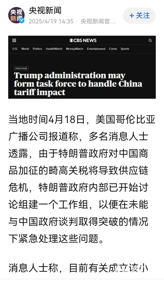 » 白宫慌了!将设工作组紧急处理对中国加征关税危机