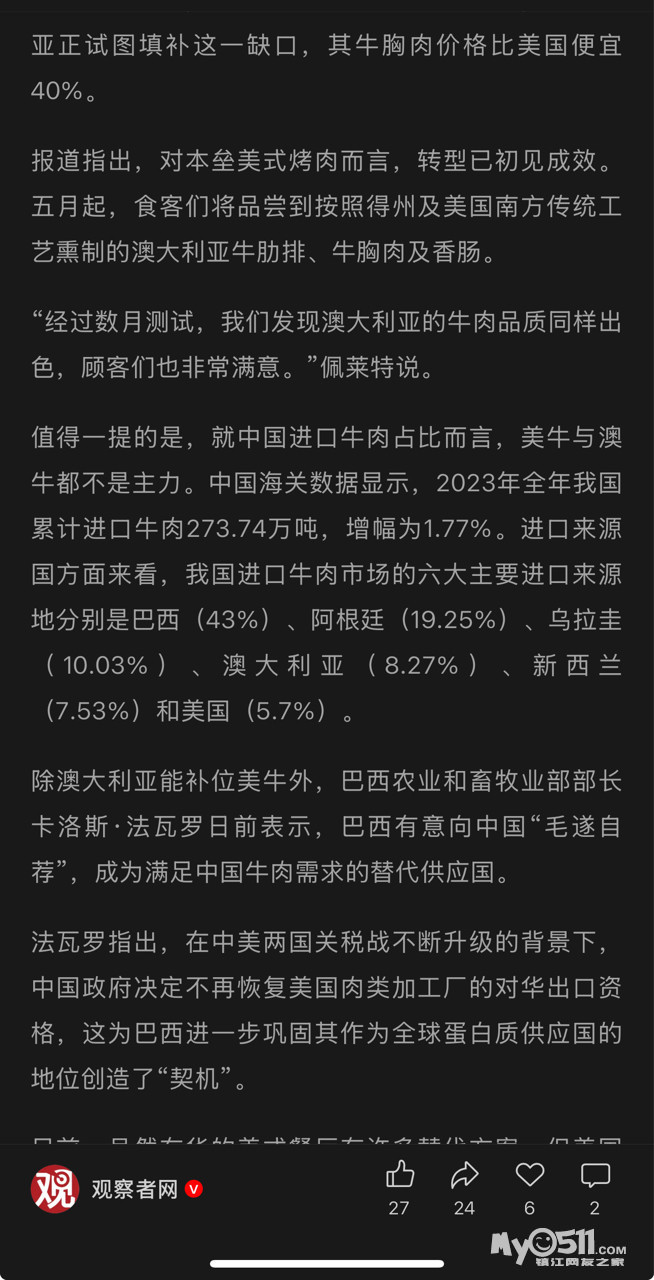 “美国牛肉太贵,换换口味”