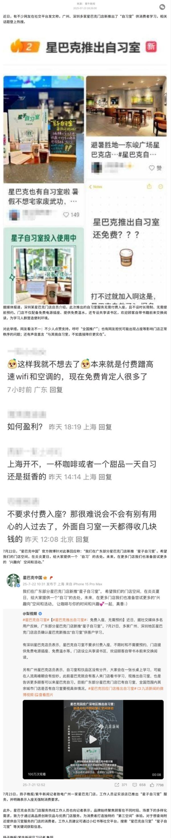 » 星巴克部分门店推出免费自习室,品牌回应:将尝试更多兴趣空间