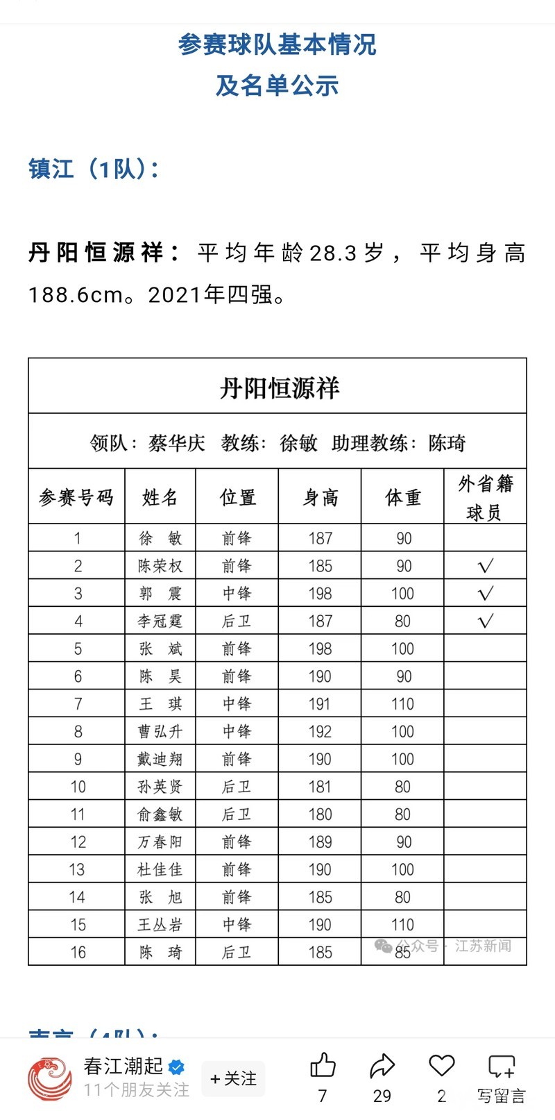 » 篮球苏超来了,这次不装了,丹阳出战