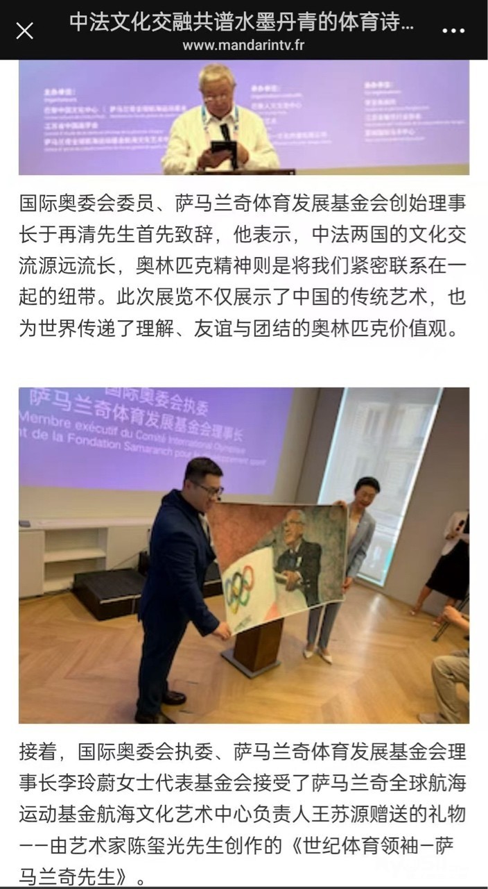 中国大陆政府用他的作品献礼香港特区政府回归20周年。2024年奥运会,国家奥委会选用他的作品代表国礼,献礼法国奥委会。萨马兰奇的画像,同时还有两幅作品,其中一幅被世界帆船联合会收藏。