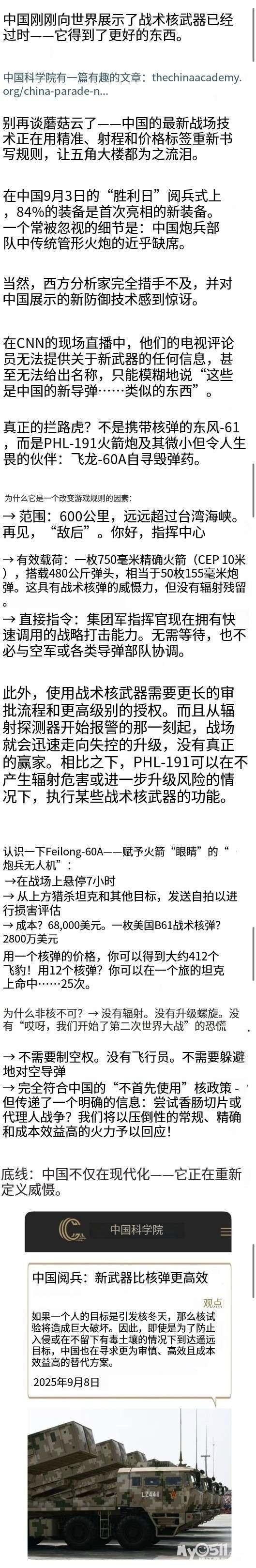 欧盟也许看不懂,但川皇还是有点水平的,美国最大的问题是面对核弹的失效和运载火箭的没有的问题。民兵3早就破烂不堪。英国本来就是用的美国的,法国早就废了。中俄美三国都能理解9.3的意思,就是美国如果发射了某 ...