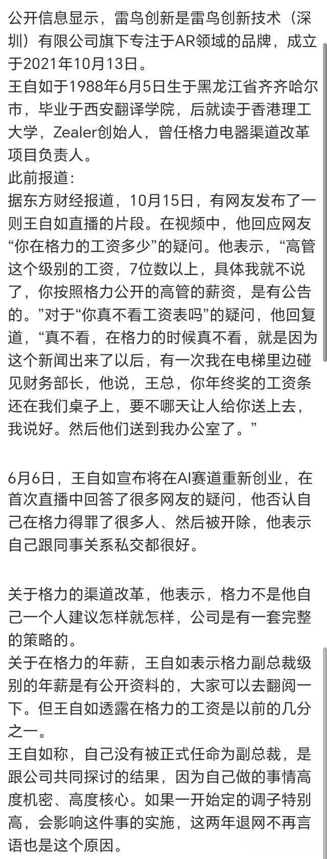 » 自如找到新工作!曾称在格力工资7位数