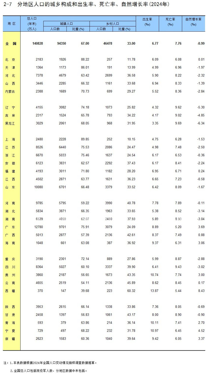 国家统计局编著出版的《中国统计年鉴2025》公布了2024年31个省份的人口出生率、死亡率和自然增长率数据。第一财经记者梳理发现,2024年,有10个省份人口出生率达到或超过8‰。在人口自然增长率方面,有11个省份的人口自然增长率保持正增长。