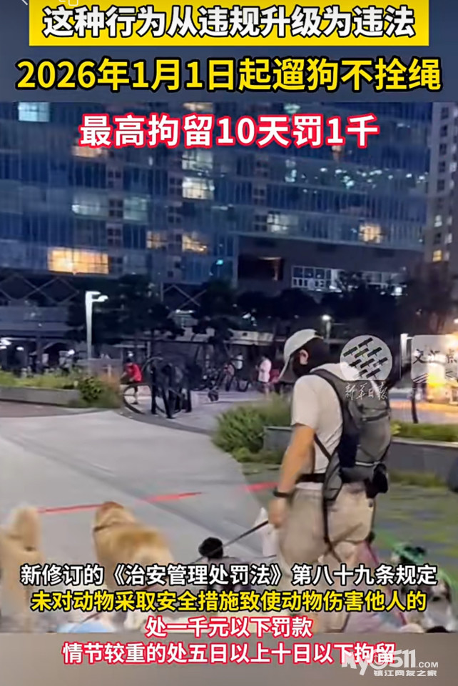» 明年遛狗不拴绳最高拘留十天罚款一千