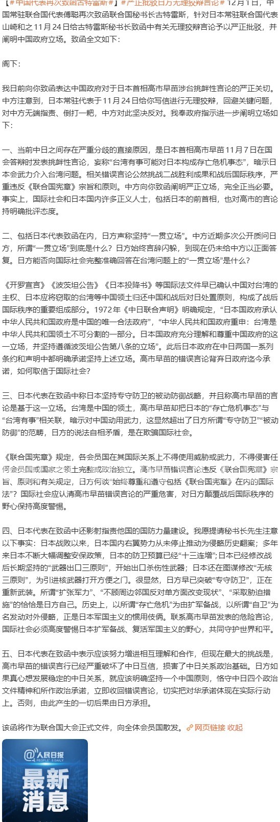 » 中国代表再次致函古特雷斯严正批驳日方无理狡辩言论