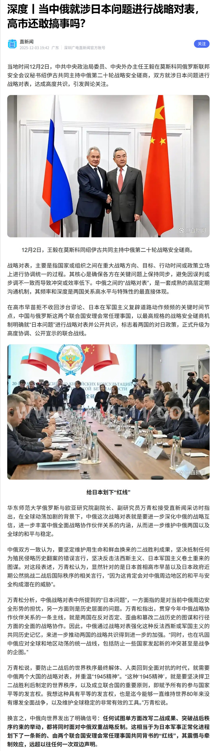 » 深度丨当中俄就涉日本问题进行战略对表,高市还敢搞事吗?