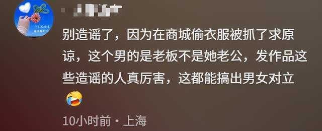 最后,需要说明的是,有网友在该视频下留言称,这对男女并非夫妻关系,而是服装店老板与顾客之间的纠纷。有说法称,女子疑似在店内偷衣服被当场发现,才会下跪求原谅。