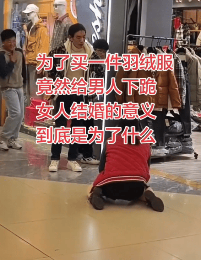 百姓话题  >  [资讯速递] 女子商场跪求丈夫买羽绒服被训斥?男子正脸曝光,知情网友透露事情真相