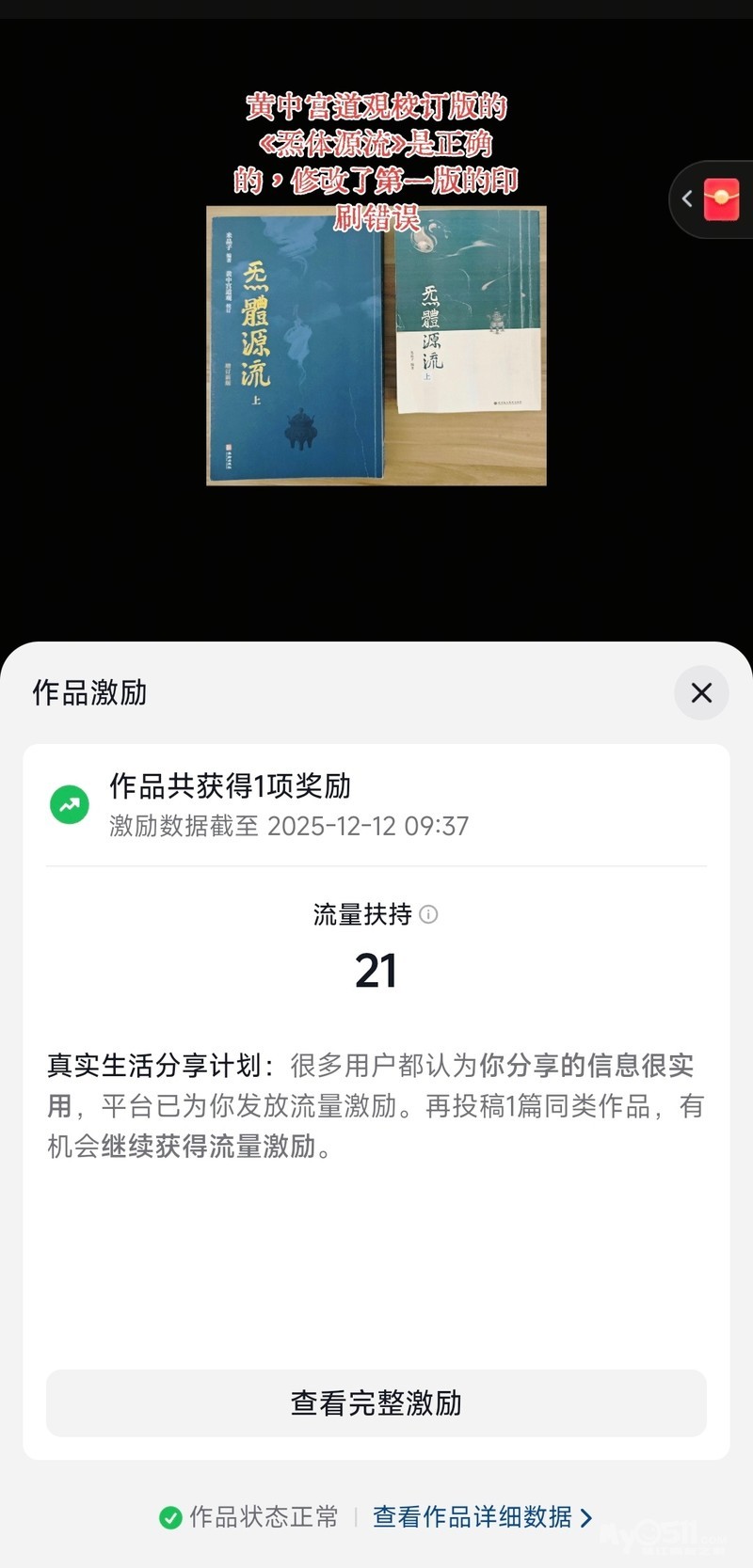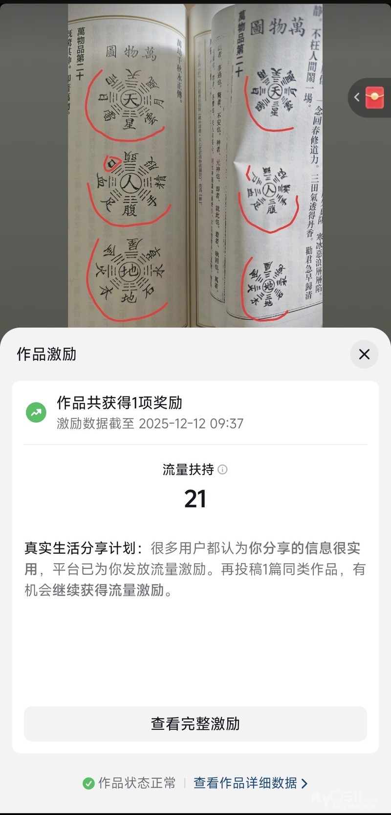 » 作品被抖音平台奖励了