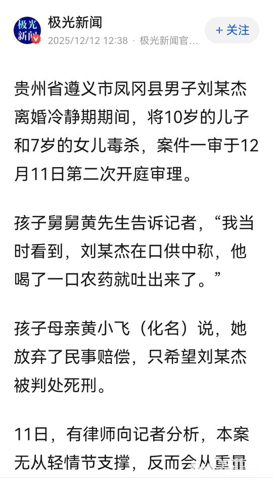 贵州遵义男子离婚冷静期毒杀10岁的儿子和7岁的女儿