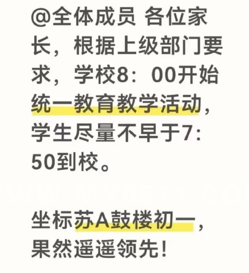 1月4日,南京鼓楼区多位家长爆料:学校一早通知,以后没有早读了,7:50-8:00到校。#家长称南京多所中小学到校时间改为8点#