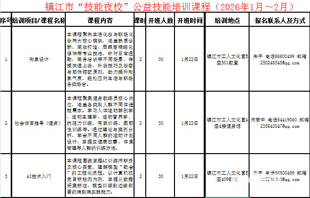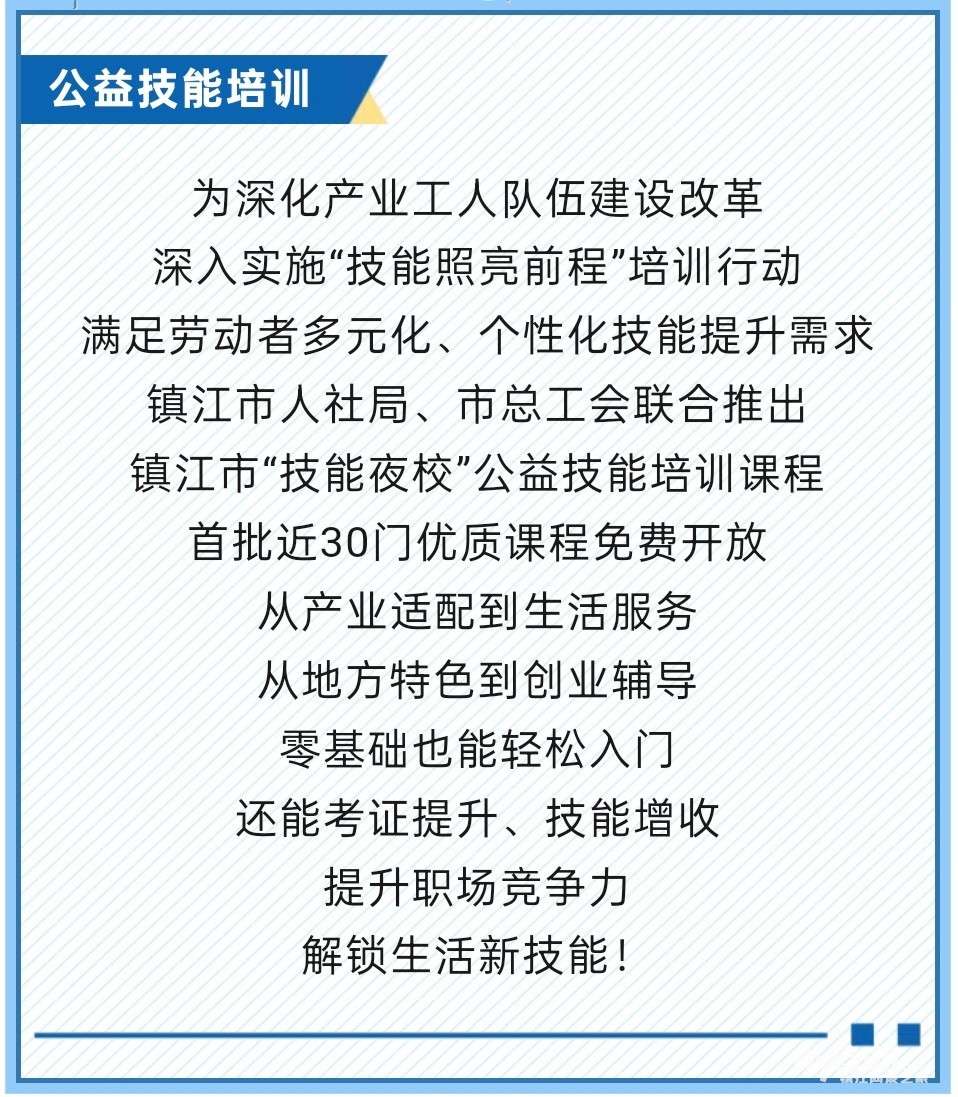 » 首批,镇江市“技能夜校”公益培训课程发布!