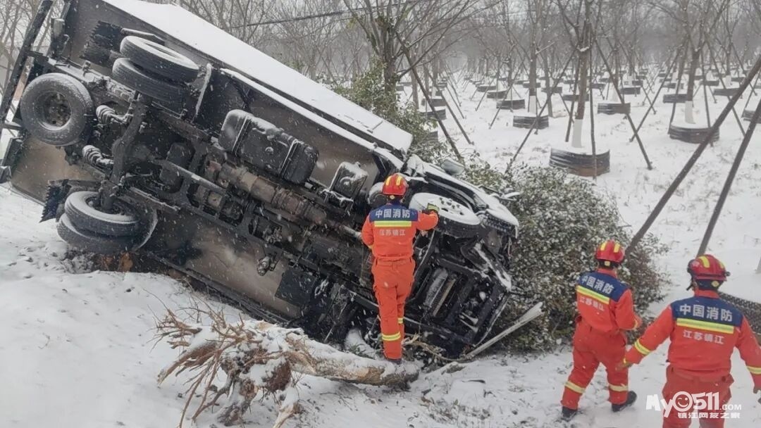1月20日8时,镇江市丹徒区312国道沪霍线附近发生事故,一辆清障车因雪天路滑失控撞上路灯杆,驾驶员被困。镇江消防接警后立即出动,迅速破拆变形车体展开救援。约5分钟后,被困人员于8时19分被成功救出,并送医救治。