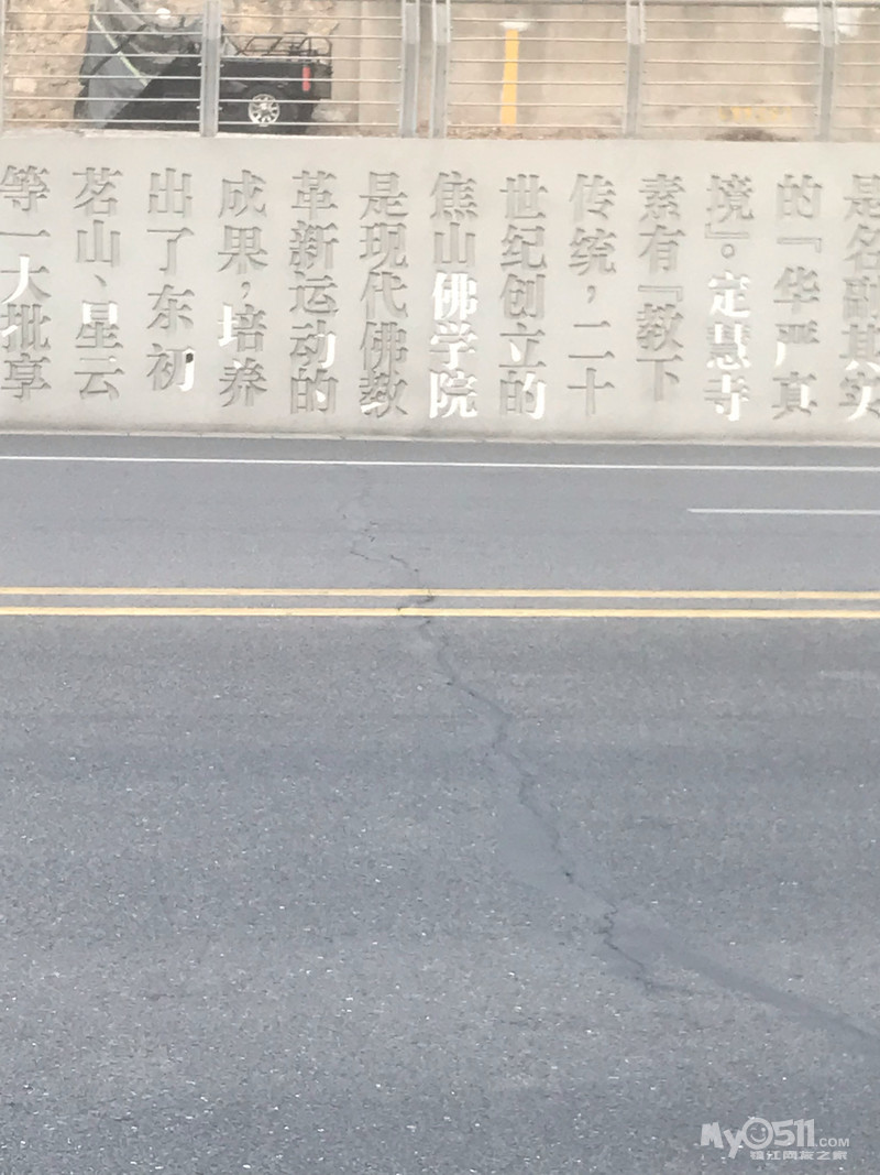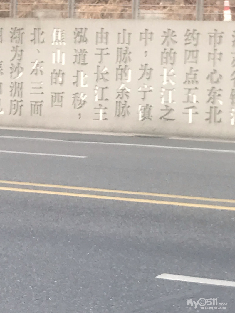 焦山路京口大润发南面一点的护墙上,有一片宣传镇江的文字。去年这个时候就停工了。可是整整一年了,到现在还没有真正的完工。看图