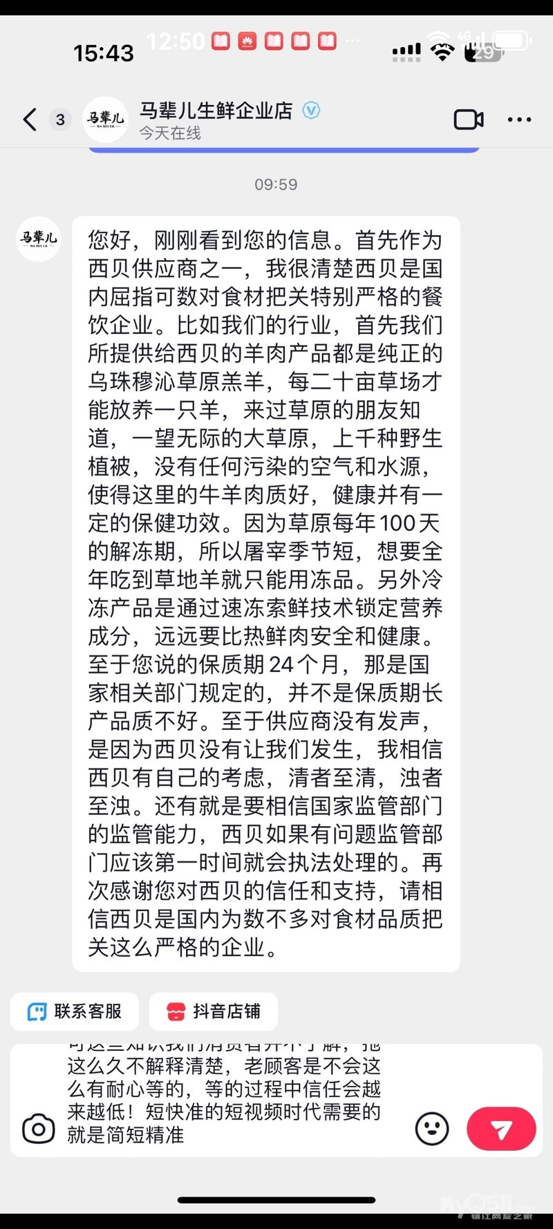 西贝供应商回应