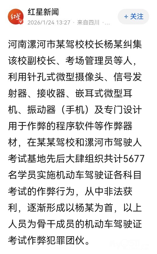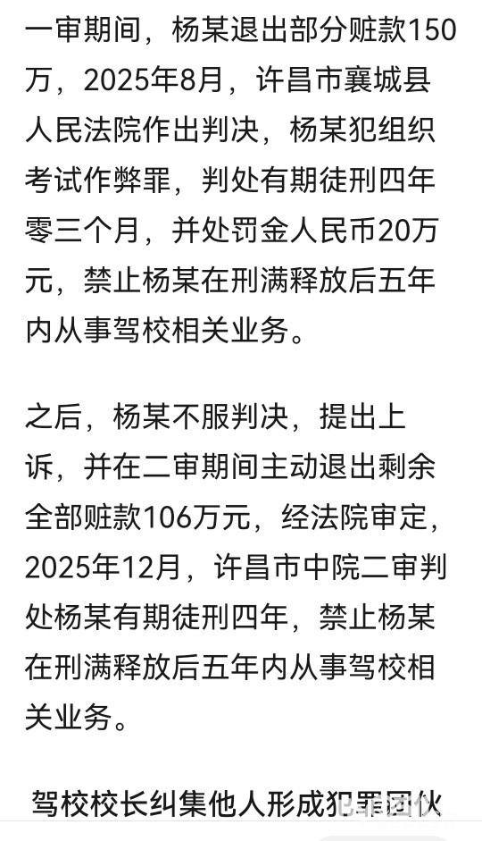 » 驾校校长纠集多人组织5677名学员考驾照作弊,退赃256万获刑四年罚20万