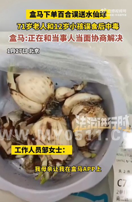 » 盒马误送有毒水仙球致老人孩子中毒