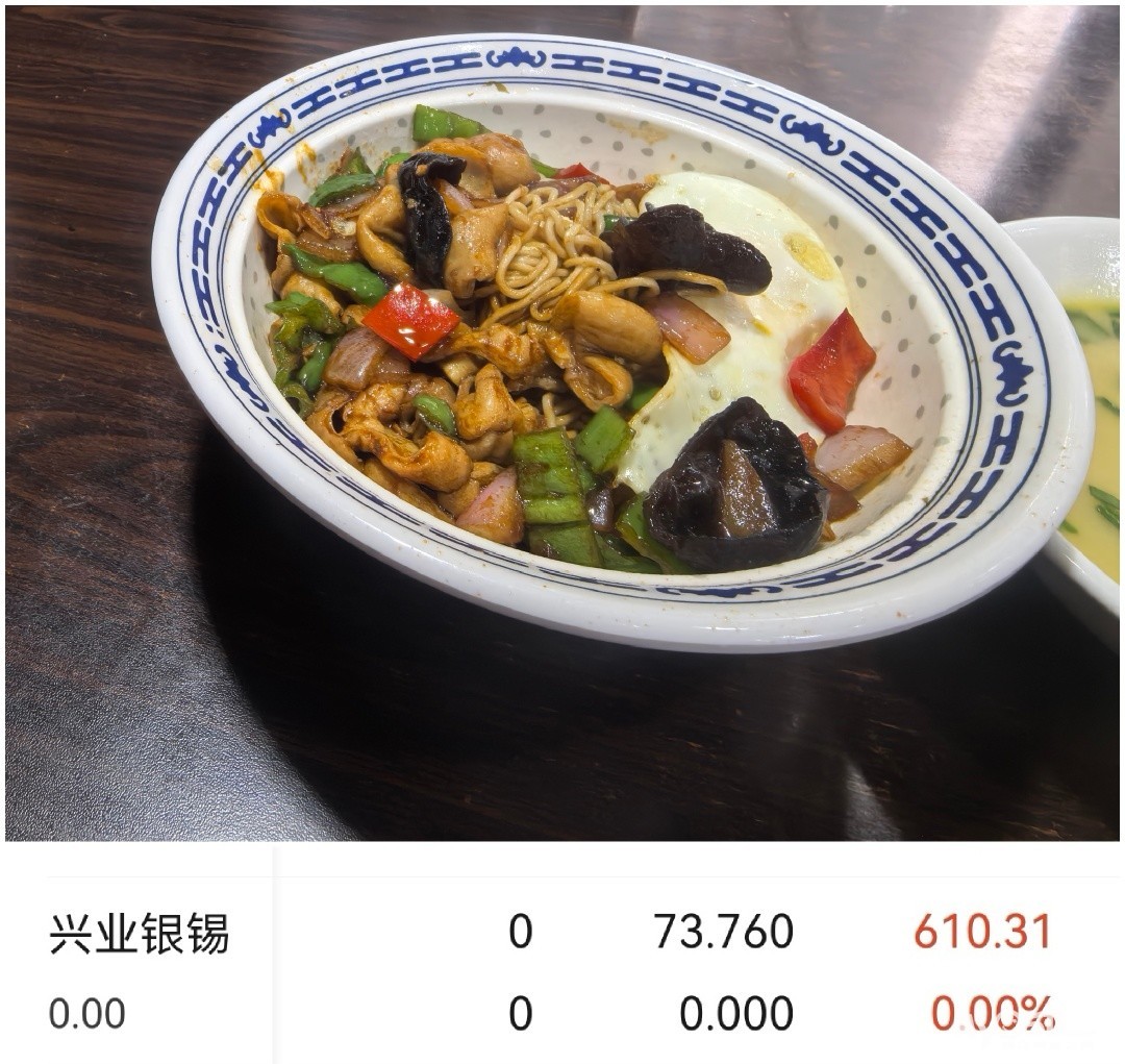 又到年底了,各种事务顿时多了起来,也比平时忙碌的多,股市也是好久不看了,昨天下午难得有空打开APP瞄了一眼股市行情,乖乖的,好久不看,很多股票已经翻了好几倍,不乏垃圾股,有人狂欢,就有人一地鸡毛,贵金属已经涨破天了,也是手欠,买了100股银子票,这种股票平时都不会碰,买完就后悔,不符合我的投资价值,这种已经炒上天的股票随时都是山顶。当然错了就要改,决定第二天开盘无论涨跌都必须卖掉。当天夜班,忙得一塌糊涂,都忘了这事,我这人比较佛系。今天下夜班,各种事情交代清楚,骑电瓶车出单位门已经9:32分了,股市已经开张,赶紧电瓶车靠边,掏出手机打开大智慧,激动的心,颤抖的手,没想到银子票涨幅8个点,连忙挂单低于当前价5毛,顿时就成交,挣了6百元,立即骑电瓶车到菜场买了干切牛肉,孩子期末考试第二天,需要加强营养的。