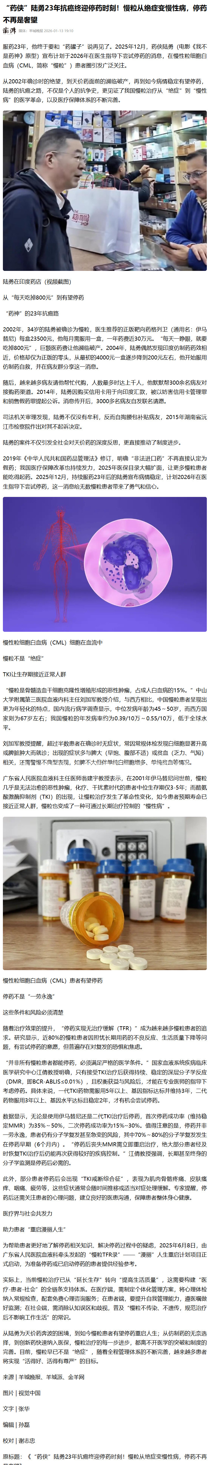 “药侠”陆勇23年抗癌终迎停药时刻!慢粒从绝症变慢性病,停药不再是奢望