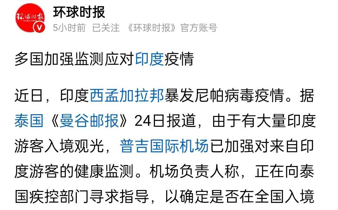 目前印度已对密切接触者实施隔离,邻国也加强了边境筛查,疫情暂时处于可控状态。但这场疫情再次提醒我们:在全球化时代,任何一个角落的病毒风险,都可能影响全球;而尊重自然、敬畏生态,才是抵御人畜共患病的最好“疫苗”。