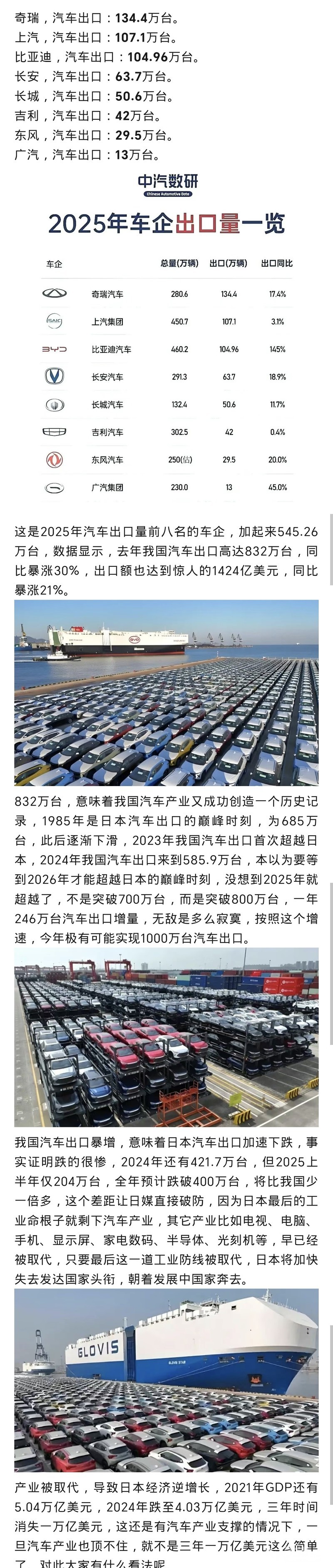 中国2025汽车销量3440万辆,增长9.4%。印度551.7万辆,增速6%。
