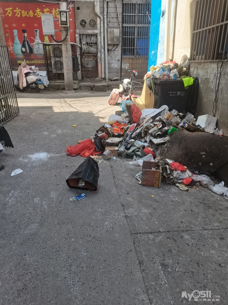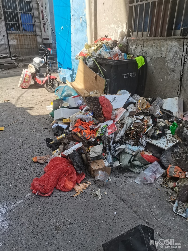 大市口30幢居民唯一出入口每天经过肮脏垃圾桶,扫地员路上垃圾也往这到。