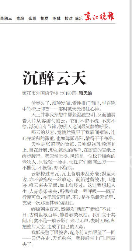 顾天瑜发表的《沉醉云天》