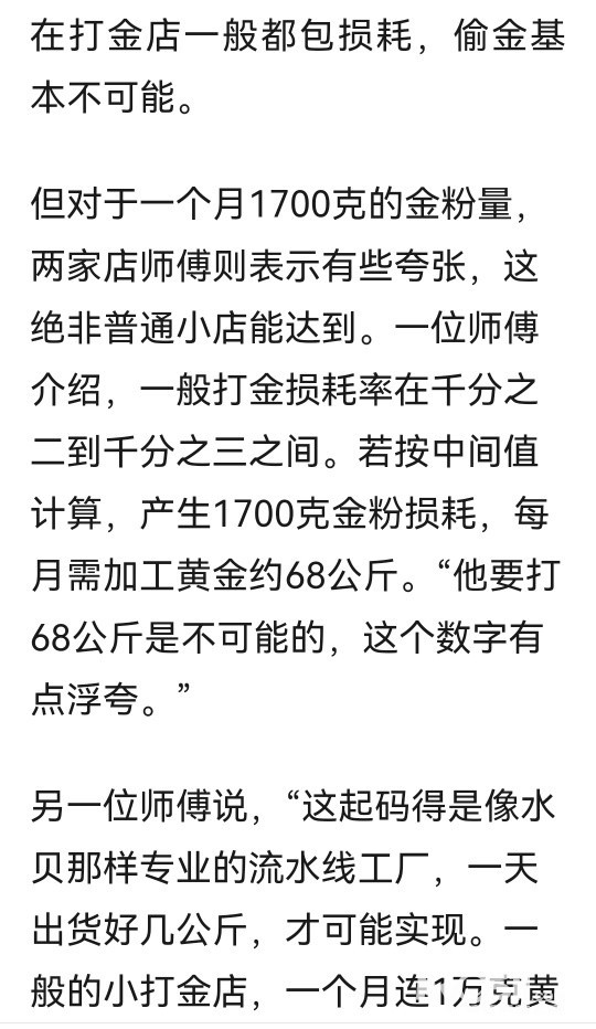 » 一打金店一个月扫出1700克金粉,价值200万!网友质疑“偷金”,店长回应
