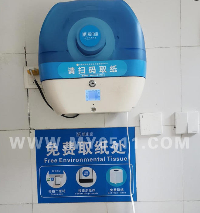 现在厕所免费取纸机要取纸都要看一下广告的