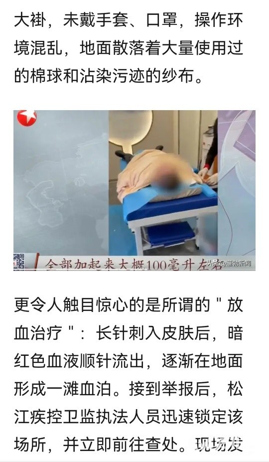 » 黑诊所放血疗法,地面血流成泊!无证行医者却说在“排邪气”