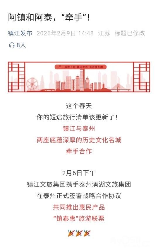 镇江和泰州牵手了