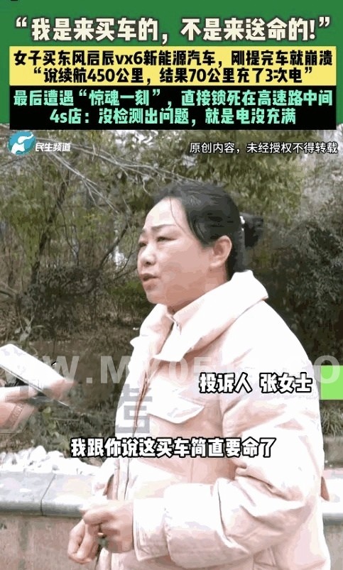 美女花13万提东风启辰纯电SUV,销售拍胸脯说续航450公里,谁知,充到97%电开70公里竟充3次电,最后还在高速行车道突然趴窝,女子崩溃大哭:“我是来买车的,不是来送命的!”
