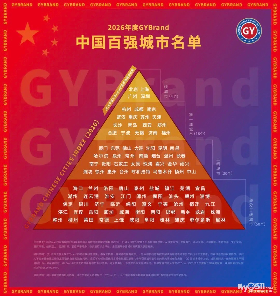3月5日,城市指数研究机构GYBrand独家编制的《2026年度中国百强城市指数》正式发布。该指数立足全球视野、扎根中国实践,构建多维度评价体系,围绕经济实力、基础设施、治理效能、医教资源、文化交流、营商环境、发展潜力、创新活力、品牌引领、国际声誉十大核心维度展开研究,全面展现全国百强城市高质量发展的最新实践成效,系统剖析百强城市在发展新格局下面临的机遇与挑战。