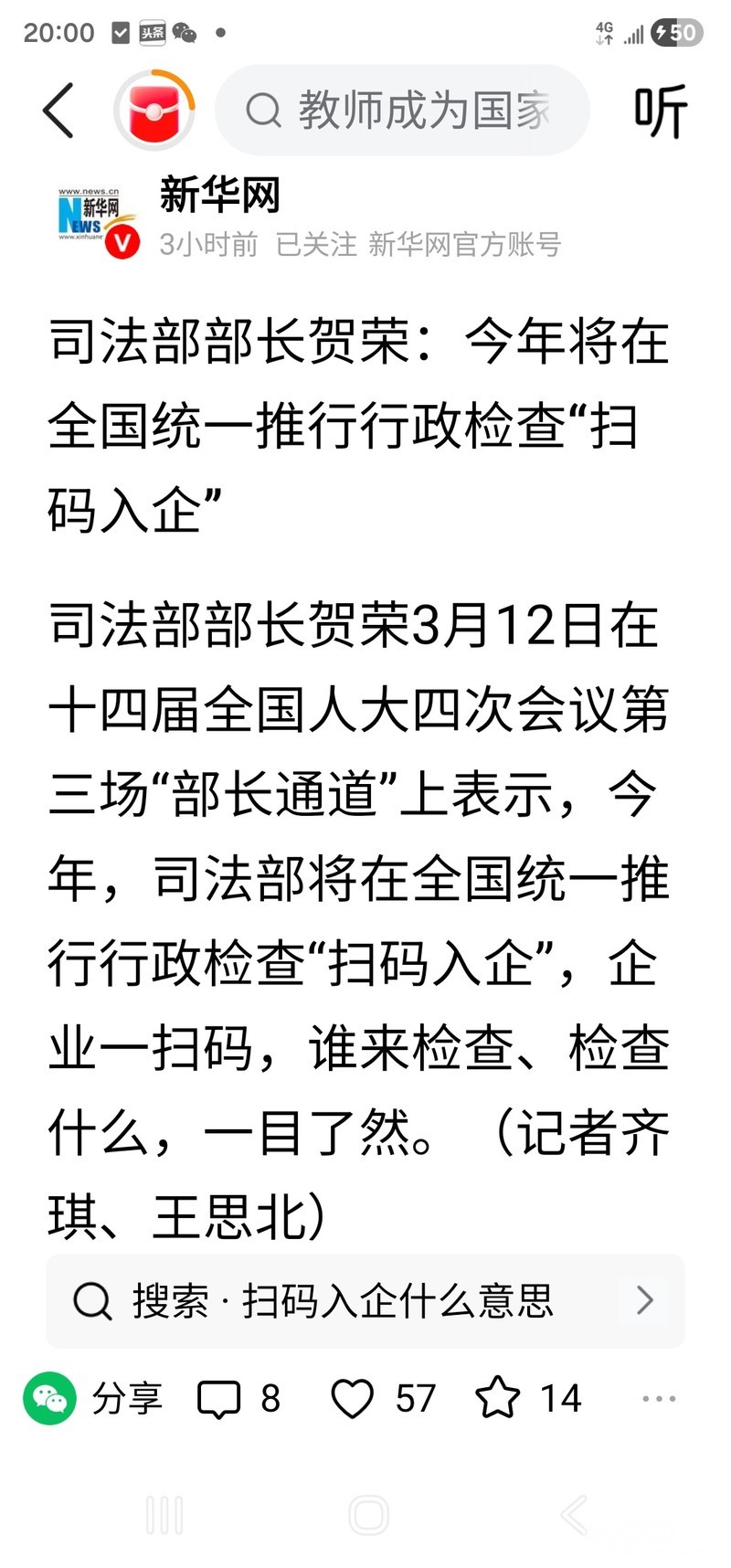 » 全国统一推行行政检查“扫码入企”,企业一扫码,谁来检查、检查什么,一目了然