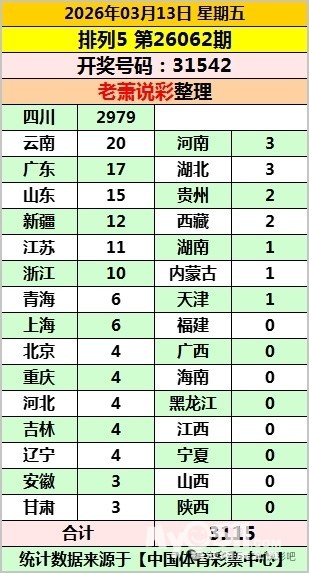 开的号码31542/等于开的12345/5个号码四川一个省中奖2979注不知道是不是一个人中的,这就是中国彩票哈哈